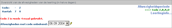 U zult merken dat code Z niet voorkomt in de lijst met aangeboden codes. Dit heeft natuurlijk een reden: de controle op het aantal periodes Z wordt hierdoor stukken eenvoudiger. De ziekteperiodes geeft u in via de knop 'Afwezigheidsperiodes'.